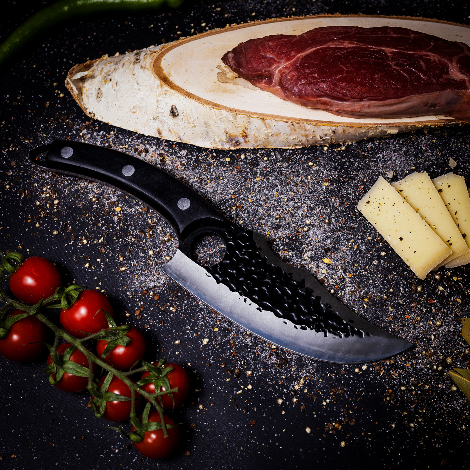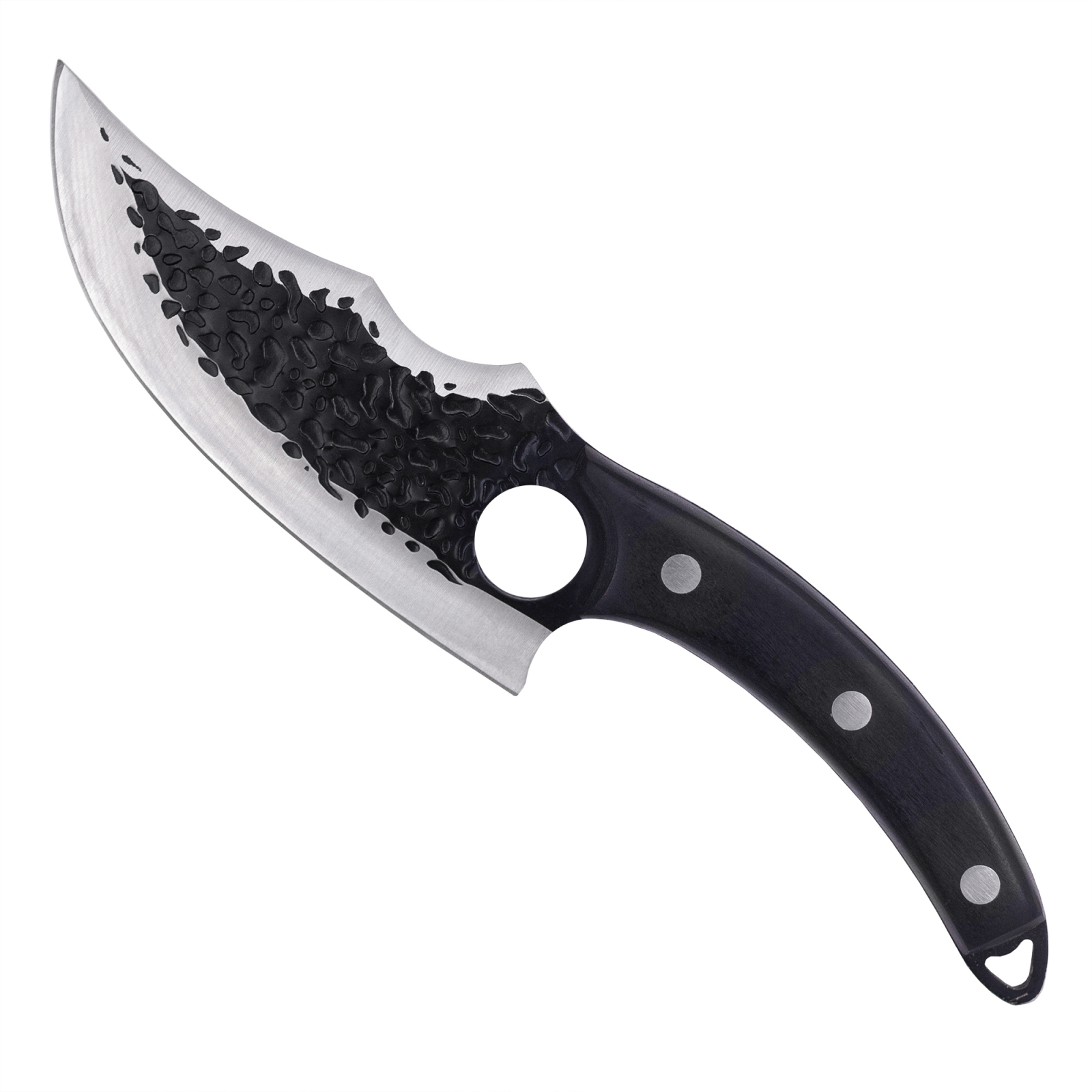 1 x CUTIT JAPONEZ II, BUCATARIE & CAMPING, FINISAJ HAMMERED, OTEL INOXIDABIL 420, MANER LEMN, 26.5 CM