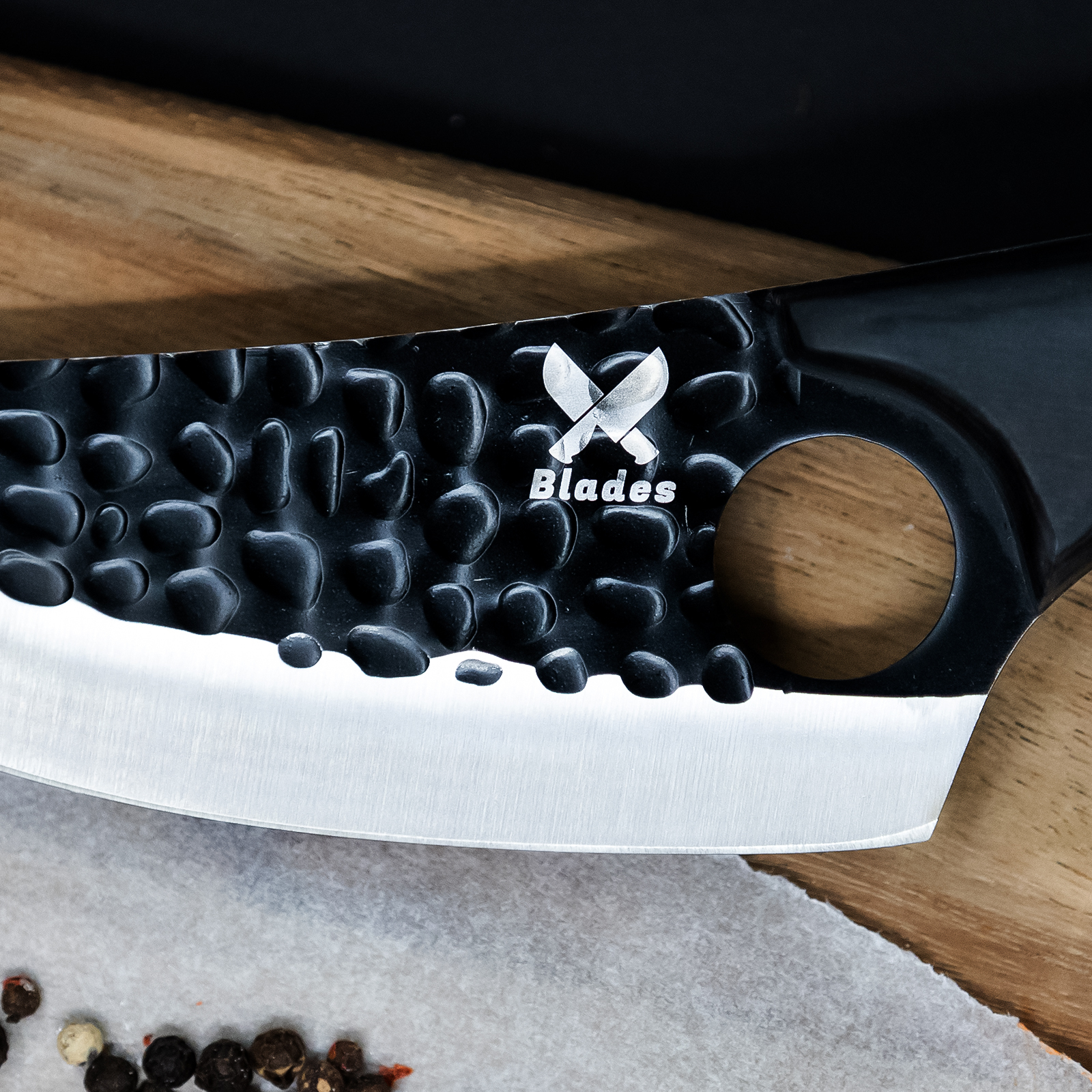 Cutit Japonez, Bucatarie & Camping, Finisaj Hammered, Otel 3Cr13, Maner Stejar sau Nuc, 27.5 cm